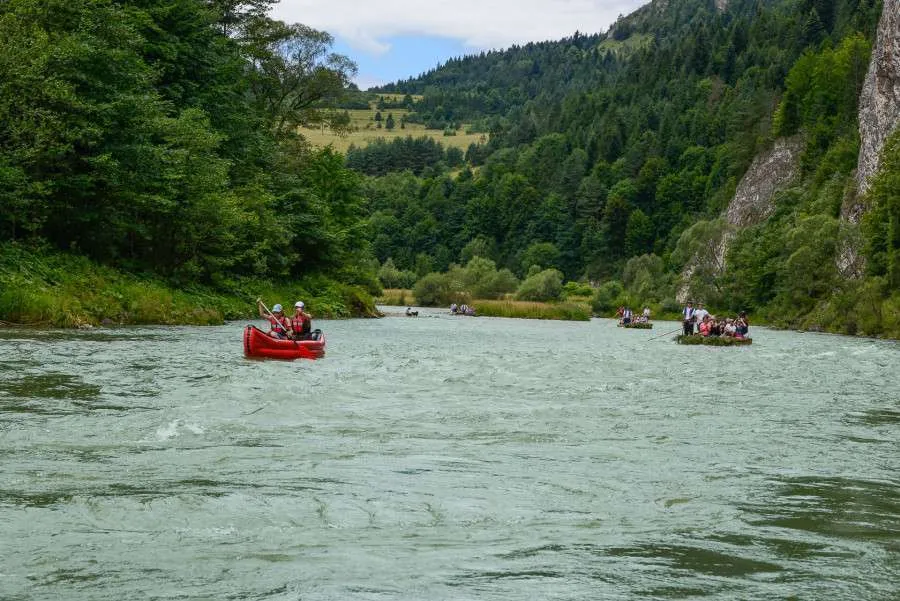 Vodácky nás Dunajec ničím nezaskočil – vodnatá řeka sice rychle proudí kolem pobřežních skal, ale nenacházíme tu žádné zrádnosti ani nebezpečí. Jen je potřeba dát pozor na silné vracáky a občasné mělčiny. A když si náhodou nejsme jistí, stačí následovat pltníky, kteří řeku znají nazpaměť.