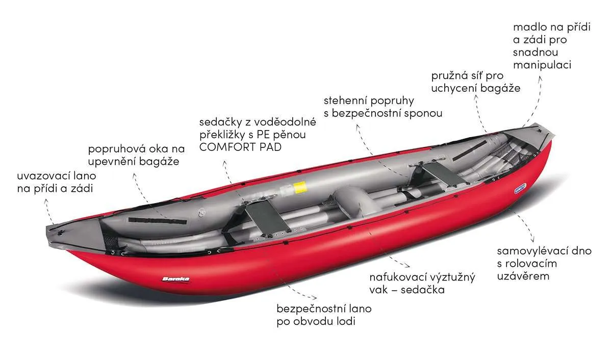 Samovylévací kánoe BARAKA je ideální loď na turistiku i na těžkou divokou vodu. Mimořádně pevný trup má výborné jízdní vlastnosti, které posádka ocení zejména při plavbě v peřejích. BARAKA nabízí bezkonkurenčně bohatou vnitřní výbavu a mimořádně velký vnitřní prostor. Loď uveze 2 pasažéry a 1 dítě, respektive 350 kg nákladu. BARAKA je správná volba pro vodáky, kteří nechtějí dělat kompromisy.