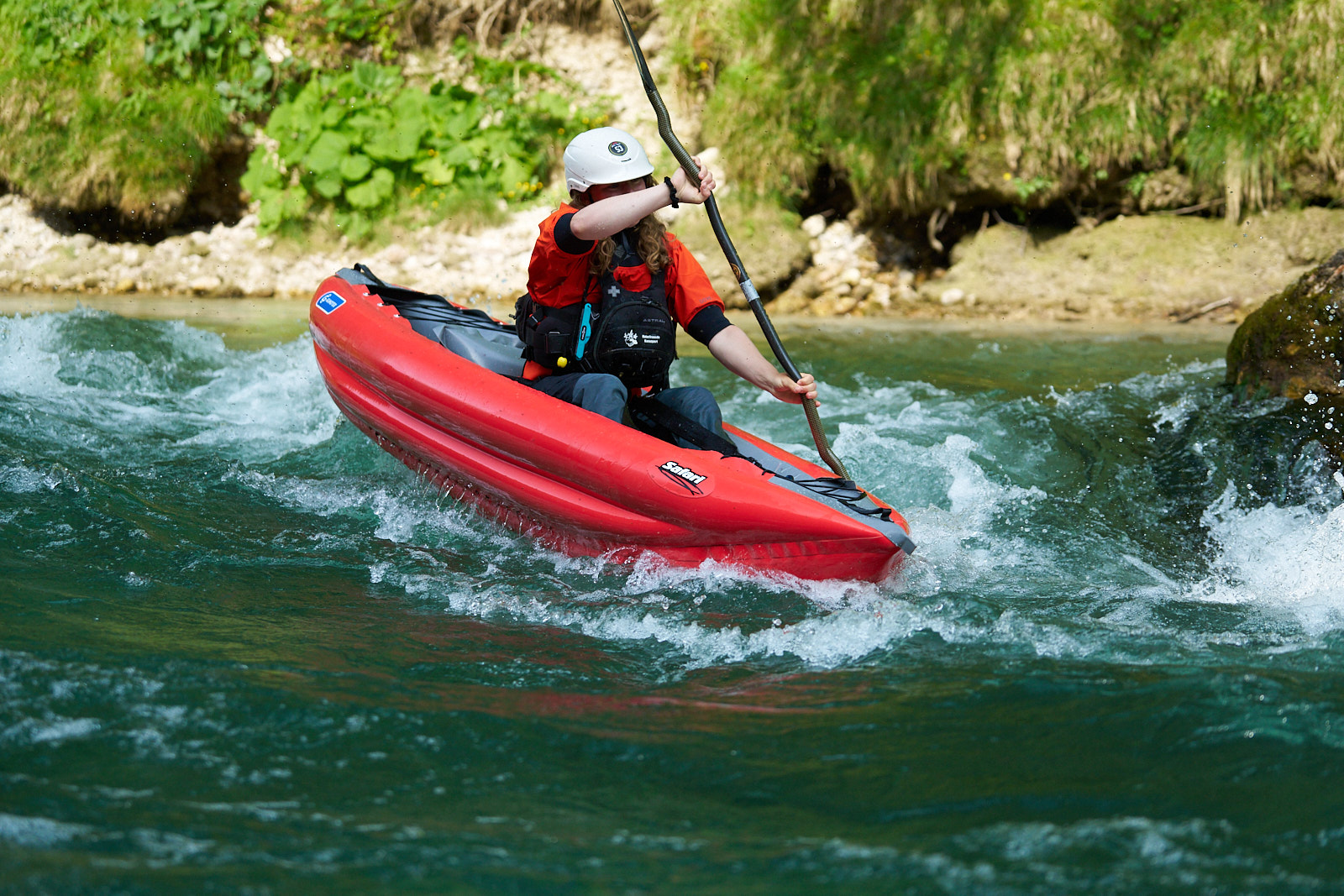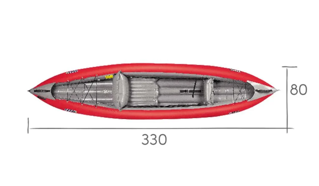 Člun můžete položit NA PLOCHO při zdolávání prahů nebo válců! Tuto exkluzivní výhodu nafukovacího kajaku umožňuje jeho tvar a nastavitelnost všech klíčových bodů: opěrky nohou, stehenních popruhů, opěrky zad i výšky sedáku.