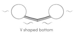 Obrázek vlevo: Ploché dno kajaku se svislými boky (zde „celodropstitch“ se širokým dnem) má tendenci se na vlně „přilepit“ a převrhnout se, jakmile se vlna převalí.