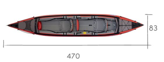 Ve dvoumístné verzi pro výkon: dva pádleři jsou daleko od sebe, což jim umožňuje nejen používat dlouhá pádla pro seakayaking nebo maraton, ale také pádlovat záběry s vysokou amplitudou, aniž by si navzájem překáželi, pádly se nepotkají.